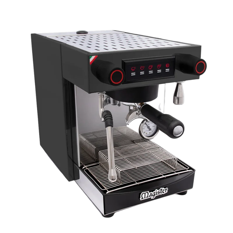 A Magister ES40 egy olasz gyártó által készített automata kávégép, amely az egyszerű kezelhetőség és a professzionális kávékészítés kombinációját nyújtja. A gép rozsdamentes acél vázból és festett karosszériából épül, ami tartósságot és hosszú élettartamot biztosít. A 1,2 literes kazán thermosiphon (hőcserélős) rendszerrel rendelkezik, ami stabil hőmérsékletet tart a kávé extrakciója és a gőzhasználat során.